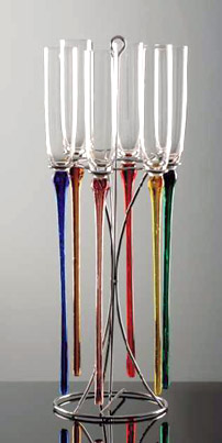 6 Champagnerkelche mundgeblasen mit farbigen Stiel,