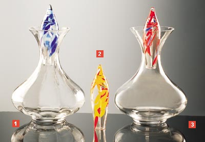 | Art.Nr.: Krug mundgeblasen | Art.Nr.: Karaffe mit mundgeblasenen bunten Glasstöpsel |