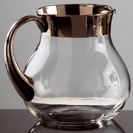 | Artikel Nr.: Dekanter mundgeblasen | Art. Nr: JK111044 Krug mit Platinrand Kristallglaskrug mit handbemalenem Platinrand In 3 Größen erhältlich: 0.25ltr, 0.5ltr und 1ltr |