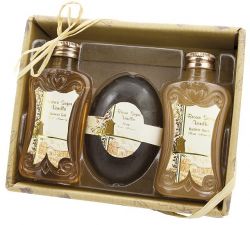 | Artikel Nr.: WS71-12 Je 120 ml Duschgel und Schaumbad,100 g Seife, in dekorativer Box. Maße: ca. 19 x 6 x 15 cm Duftrichtung: Brauner Zucker, Vanille | Artikel Nr.: WS10-18 Je 170 ml Duschgel u.Schaumbad, Nagelbürste, Mesh-Schwamm, Kerze, in offener Box. Maße: ca. 20 x 15 x 13 cm Duftrichtung: Meeresbrise |